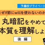 2026年2月25日 / 最終更新日 : 2026年2月10日 admin@pros 予備校プライベートブログ なぜIf節にwillを使わないのか?丸暗記をやめて本質を理解しよう《後編》 大学受験が迫っている、だけど「英語だけがネック…」そんなあなたの為の『短期決戦!予備校プライベートクラス』。このブログを通して、メイン講師の安本先生に英語を伸ばしたい受験生の多くが抱えている悩みを中心に色々と質問し、現状 […]