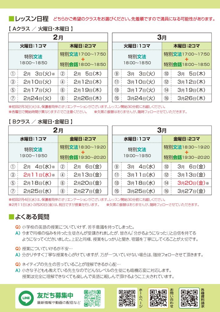 現在、小学6年生対象の2-3月の短期講座『中学英語準備クラス』の申込み受付中!