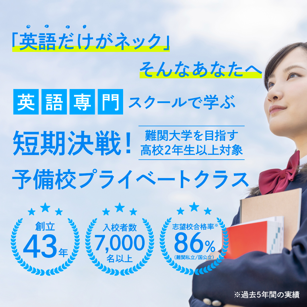時間が限られている今だからこそ出せる力があります。長期的な英語一貫教育を長年突き詰めてきた当校の強みを活かし、受験までの数ヶ月を最も効率的に使う『短期集中プログラム』を作成。講師とサポート担当者で連携し、あなただけのカリキュラムを提供し、志望校合格へと導きます。
